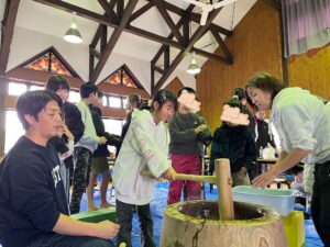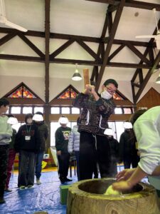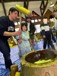 「よいしょ〜!!」の掛け声でお餅をついていきます!!