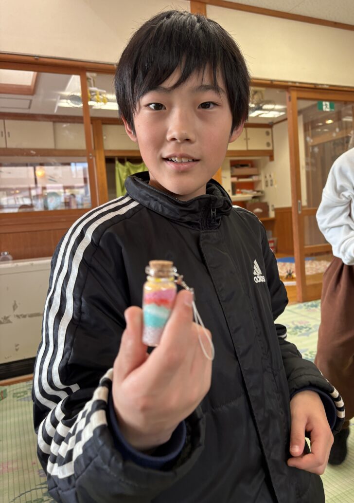 小瓶の小さな入り口にそーっと入れて、色を積み重ねていきます💛