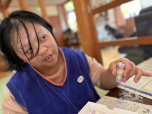 色水が「何これ〜?ジュワ〜っと広がるのが気持ちいい」とソルト&色水も感覚を刺激する面白い体験になりました😊