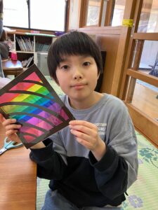 全て違う色のカラーフィルムを組み合わせて、その通り「虹」🌈を表現する子もいれば、一色で統一!